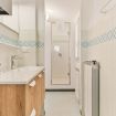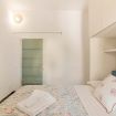 Una camera da letto con letto alla francese e accesso diretto al bagno privato dotato di box doccia;