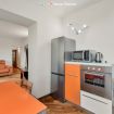 Ampio soggiorno luminoso con angolo cottura attrezzato e divanoletto