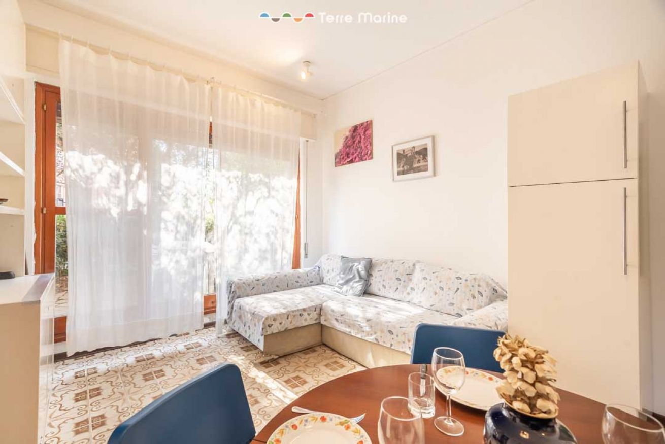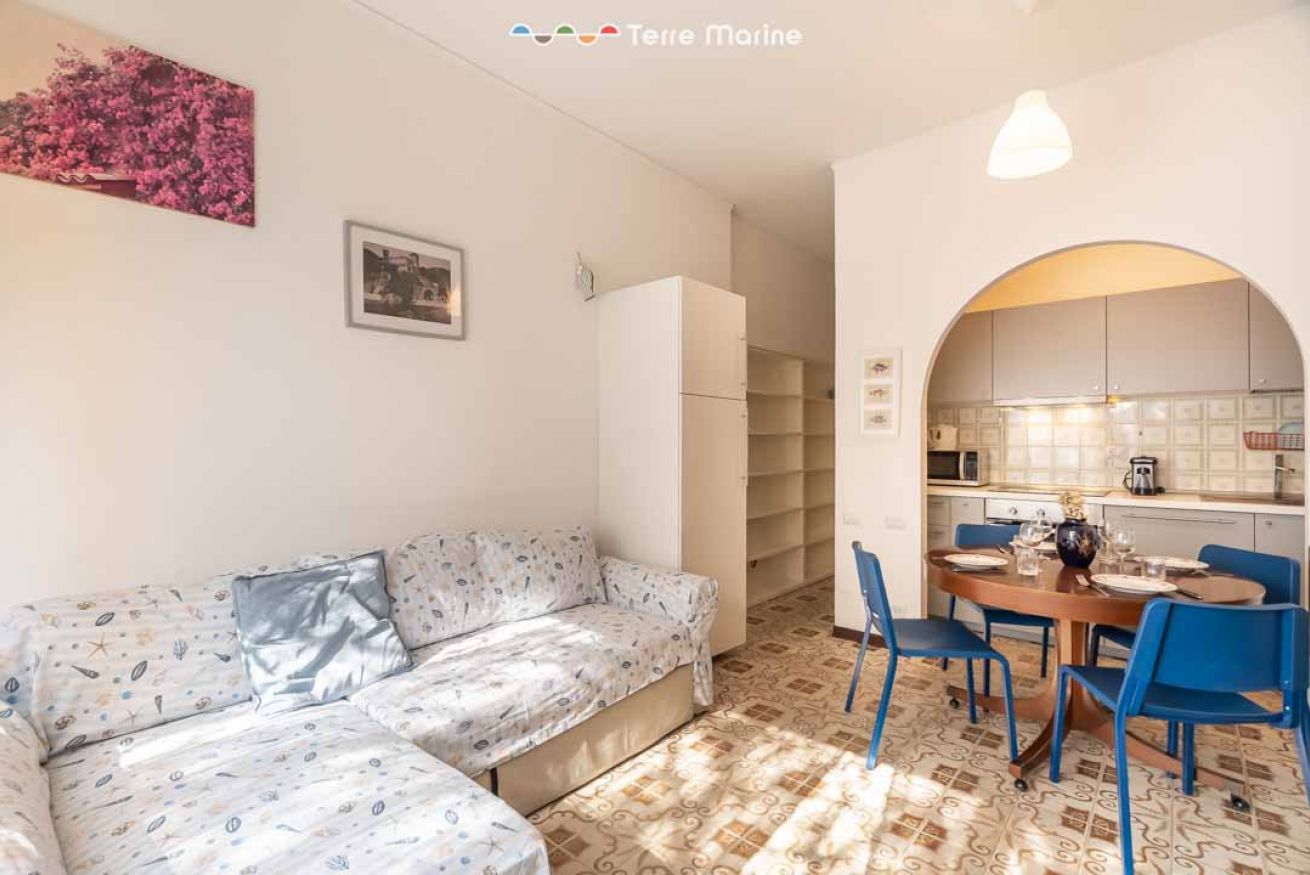 Soggiorno luminoso con cucina completamente attrezzata