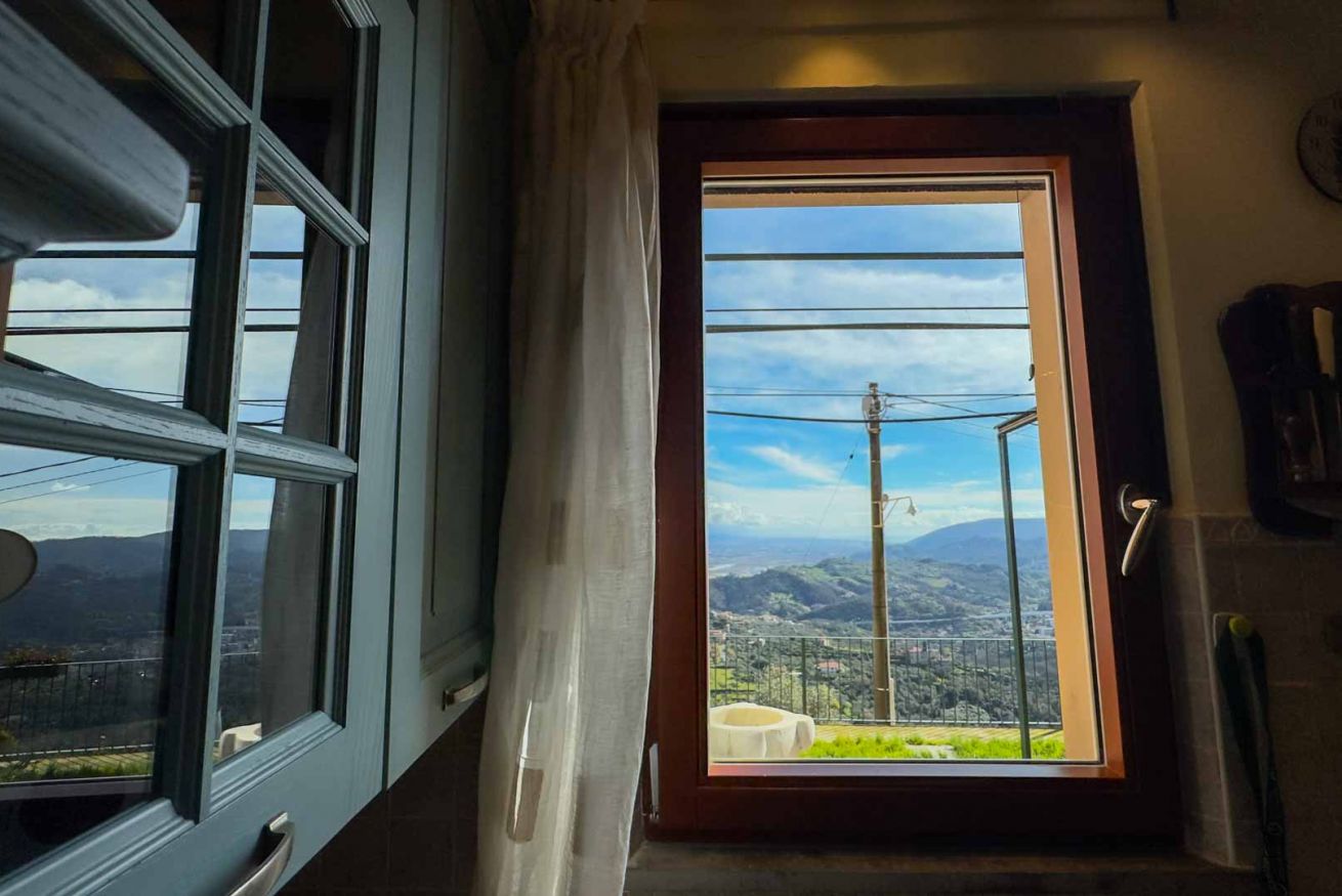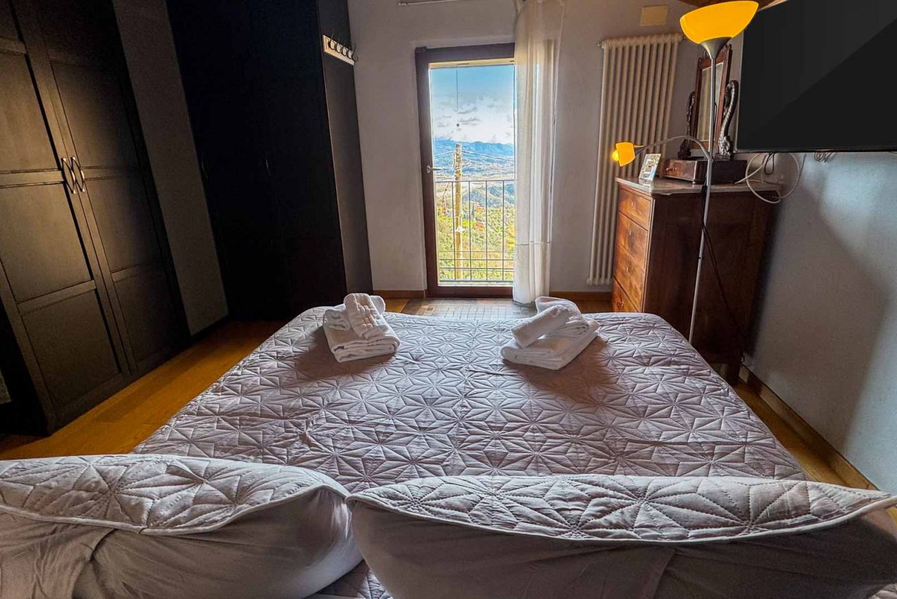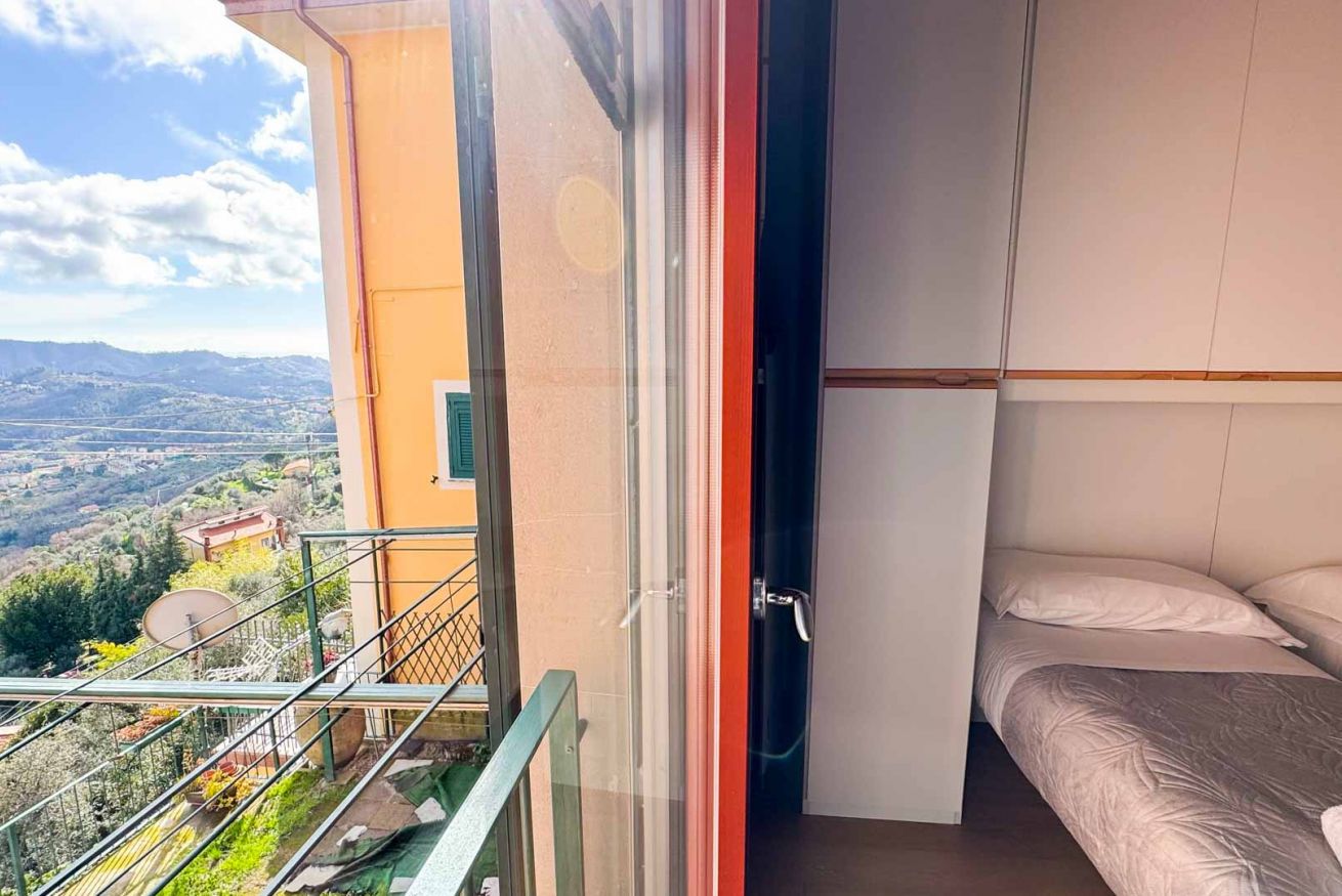 L’appartamento dispone di due camere da letto, ideali per coppie, famiglie o piccoli gruppi di amici, e regala una vista mozzafiato su tutta la vallata, dove lo sguardo si perde tra colline, natura e luce ligure. Ogni finestra racconta una storia, ogni risveglio è accompagnato da silenzio e bellezza.