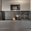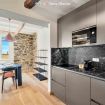Cucina con angolo cottura completamente attrezzata con elettrodomestici moderni.