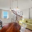 L’ingresso si apre su un accogliente corridoio che conduce a un primo bagno dotato di box doccia. Una scala interna porta al piano superiore, dove vi accoglie un ambiente unico, sapientemente organizzato: divano letto, zona pranzo luminosa e una cucina completamente attrezzata, separati da un elegante separé che garantisce privacy alla camera da letto matrimoniale, completa di bagno en-suite.