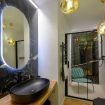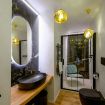 Under Bridge è costituito da tre ambienti, il soggiorno con divano letto e tenda che crea un separè e la giusta privacy, la cucina con bancone per aperitivi e cene romantiche, e la camera da letto con armadio a vista, la proprietà viene completata dal il bagno con box doccia in vetro total black.